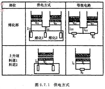 (1) 电工参数的确定,供电方式确定以后再根据电熔窑的生产能力及各部分尺寸即可计算出各区电工参数。熔化区I21=I22=1552A ,U21=U22=60V;上升道I2=1408A,U2=59V; 料道1与料道2 I2=137A,U2=58V。
