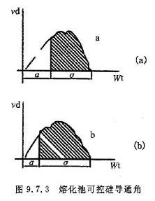 图9.7.3为熔化池在电源电压最高(400伏)和最低(330伏)变压器电压80V档位时利用示波器测得的可控硅导通角。 表9.7.10列出有关的测量数据。