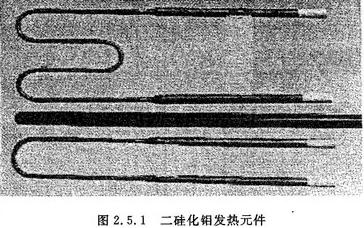 如图2.5.1,二硅化钼是一种U型的发热元件,耐高温,抗氧化。高温下表面生成一层石英玻璃膜,保护制品不再氧化。不老化,电阻不随使用而改变。耐腐蚀,化学稳定性好。耐温度急变性好。在氧化气氛下的最高工作温度1700℃,抗弯程度45kg/mm2,产品呈U字形,发热端直径有6mm和9mm两种,相应接线端直径12mm和18mm。也可按用户要求加工不同形状、型号的二硅化钼元件。二硅化钼产品常温下质脆,运输和安装方法需仔细合理。