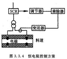 图3.3.1为国内普遍采用的控制方案。在该系统中普遍采用了HLK型恒流控制仪来控制钼电极之间的电流,使之保持恒定,具有温度调节功能。该方案控制反馈信号与母线隔离,较安全。它可以间接控制玻璃液在电熔中的正反馈失控现象。