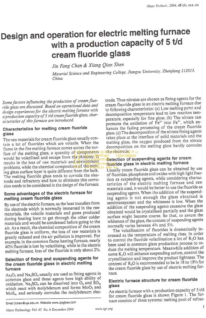 您的位置:网站首页 > 最新文章Design And Operation For Electric Melting Furnace With A Production Capacity Of 5 td Cream Fluoride Glass