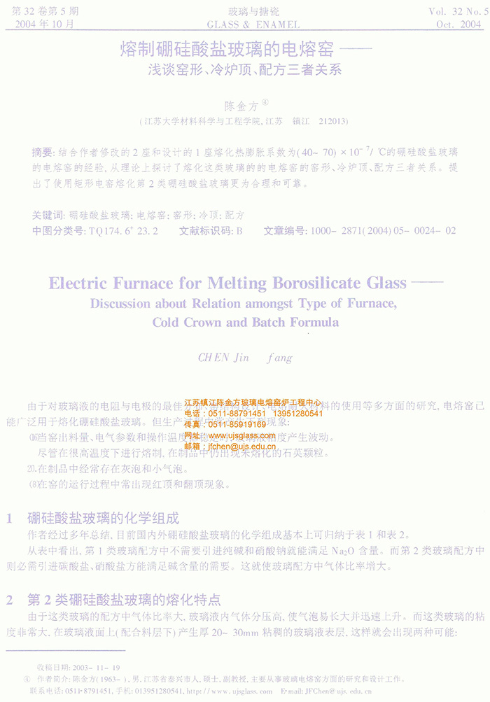 江苏镇江陈金方玻璃电熔炉工程中心