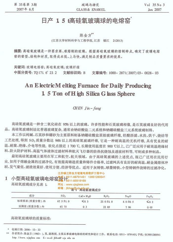 江苏镇江陈金方玻璃电熔炉工程中心