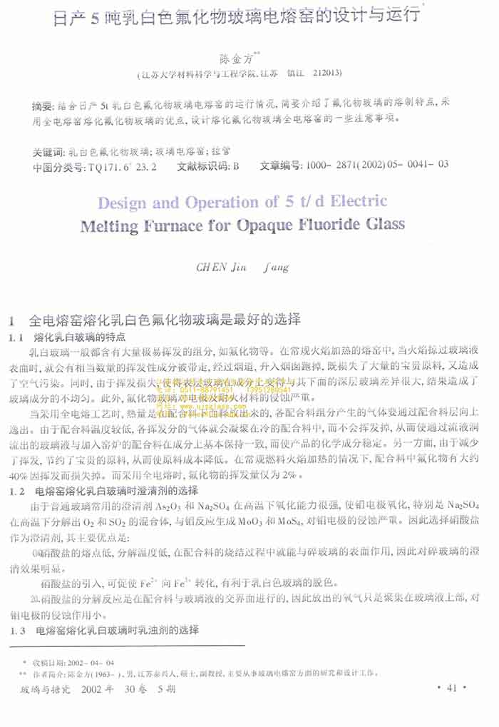 您的位置:网站首页 > 最新文章日产5吨乳白色氟化物玻璃电熔窑的设计与运行