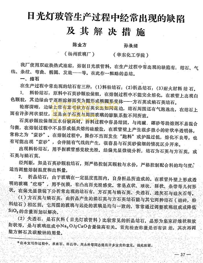 您的位置:网站首页 > 最新文章日光灯玻管生产过程中经常出现的缺陷及其解决措施