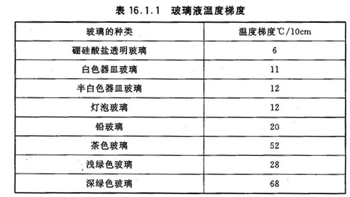 (3)辐射式供料道电加热的功率确定。CU和CW型辐射式供料道电加热的功率取决于玻璃液的进口温度、出料量、玻璃颜色、滴料温度变化范围等。表16.1.2中汇总了国内外一些玻璃厂辐射式供料道电加热的设计的装机功率和实际运行电耗数据。设计时要使装置功率留有充分余地。一般情况下,装置功率应大于平均连续消耗功率的两倍。