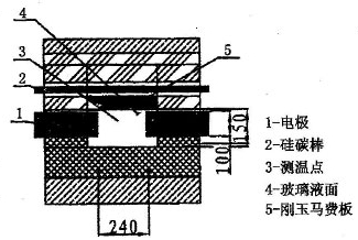 料道用插入玻璃液中的钼电极和位于玻璃液上的硅碳棒混合加热。这种加热方式利用玻璃液所产生的焦耳效应和硅碳棒所产生的电热效应共同对玻璃液进行加热保温。采用的电能约为60kW,料道的密封,大大减少了玻璃液表面的硼挥发所带来的浮渣,提高了成品率。钼电极在高硼硅玻璃料道中没有出现小气泡。电极采用无水冷保护方法。