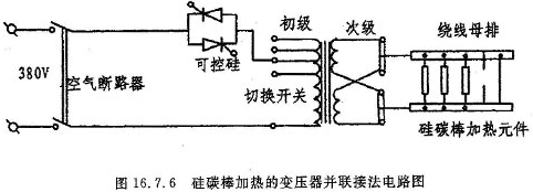 ⑴硅碳棒元件主电路:硅碳棒元件分区并联接法,主接线路图如图16.7.6
