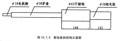 ⑵钼电极:钼电极结构如图16.7.8所示,由于安装的位置不同,钼电极的引电极长度不同,但护套及钼电极的长度和直径不变。